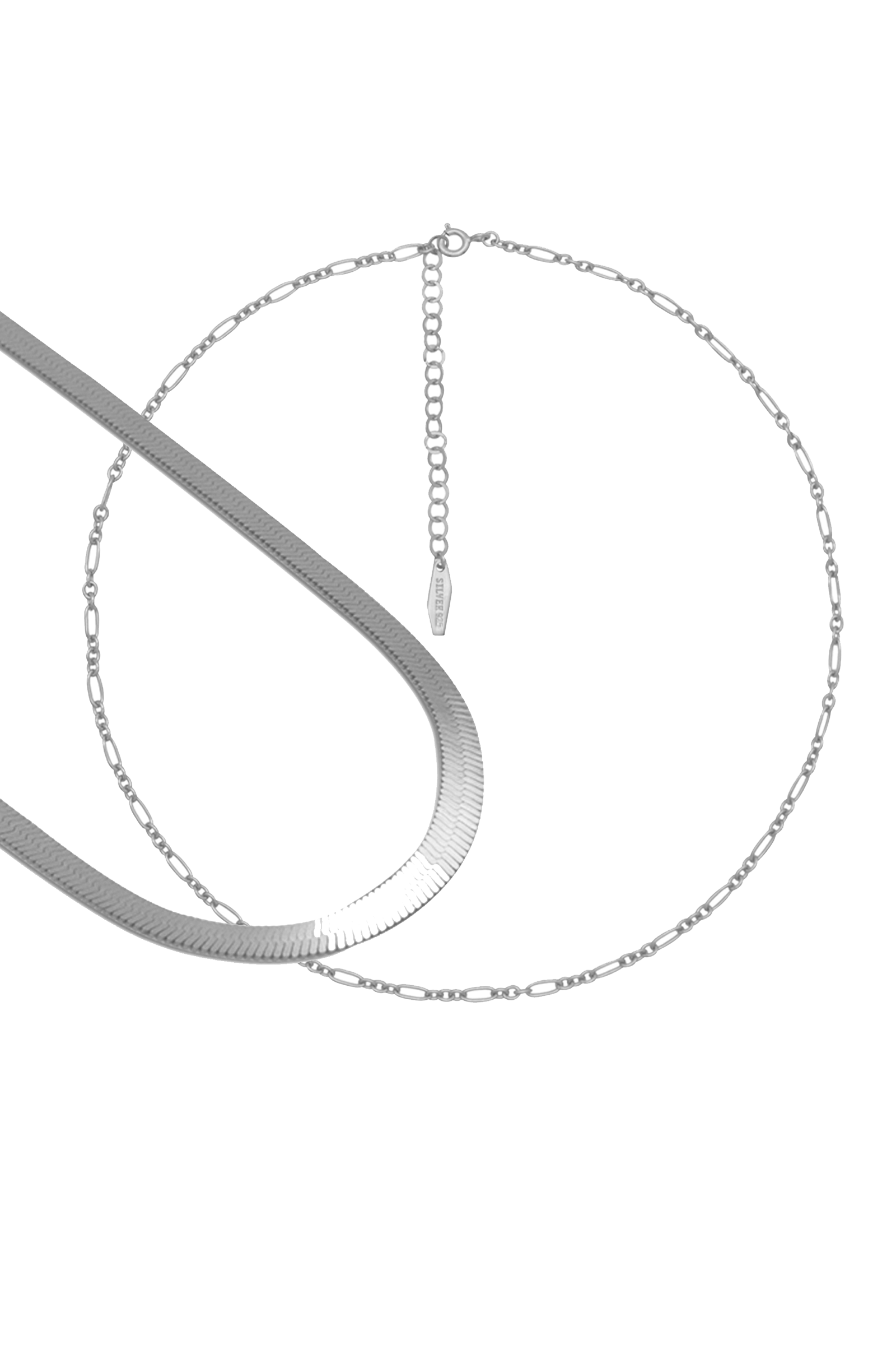 Flat Snake Necklace & Figaro Chain Necklace Set