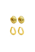 De Everyday Gold Hoops Duo Set biedt twee essential hoop stijlen die je dagelijks kunt dragen. De Wide Hoops geven een smooth, bold uitstraling, terwijl de Twisted Hoops zorgen voor een speelse twist. Ook perfect voor mismatched styling.