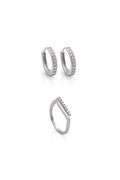 Een luxe combinatie van glinsterende zirconia hoops en een moderne square-cut ring. De Sparkling Zirconia Luxury Set is perfect voor wie houdt van subtiele sparkle en een verfijnde, vrouwelijke uitstraling. Ideaal als cadeauset of voor jezelf.